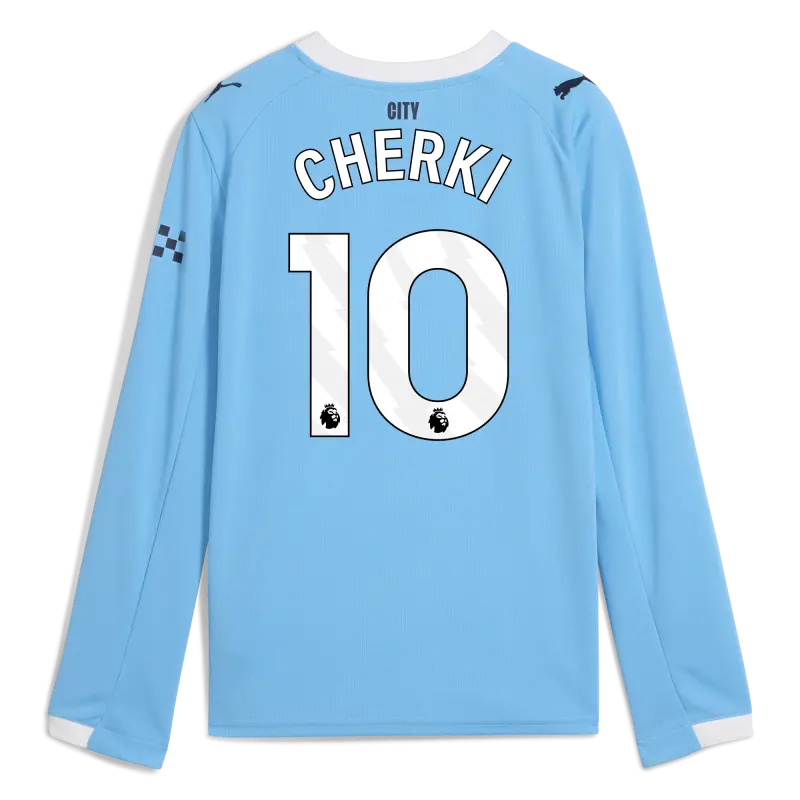 Kids’ Manchester City Home Jersey 2025/26 Long Sleeve With CHERKI 10 Printing