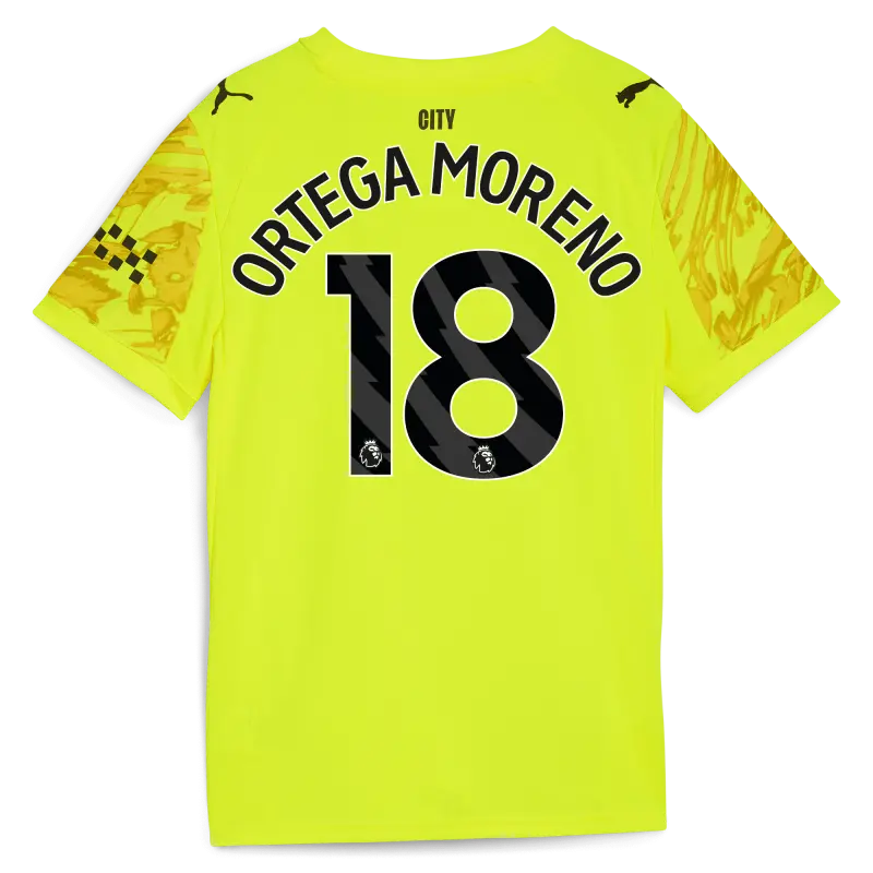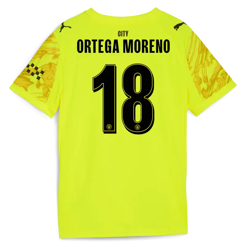 Kids’ Manchester City Goalkeeper Jersey 2025/26 With ORTEGA MORENO 18 Printing