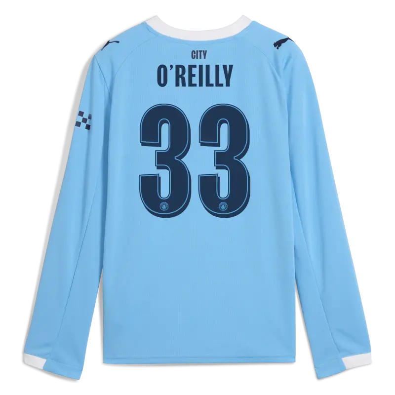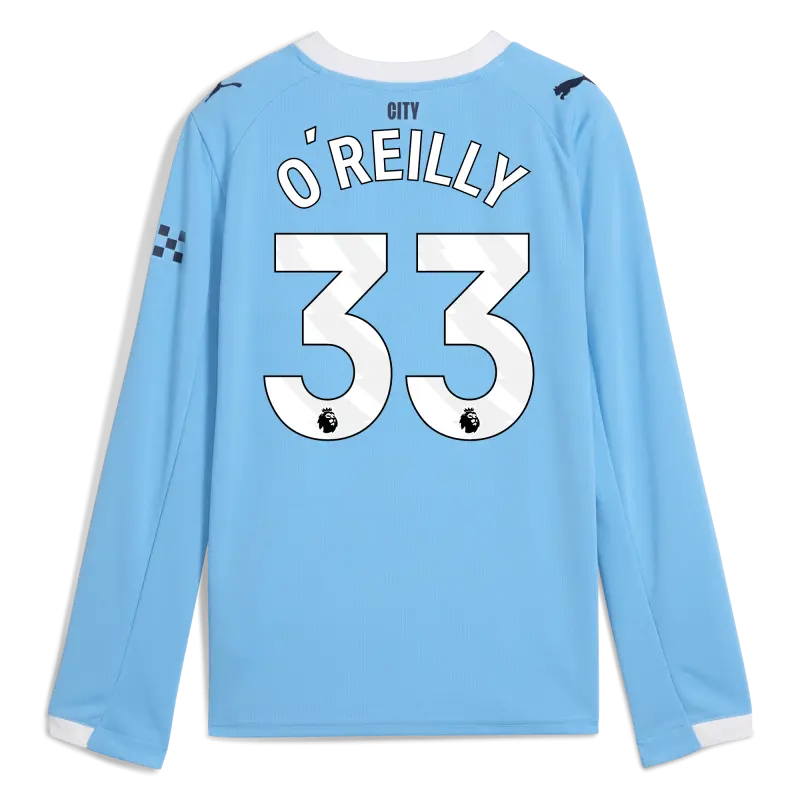 Kids’ Manchester City Home Jersey 2025/26 Long Sleeve With O’REILLY 33 Printing