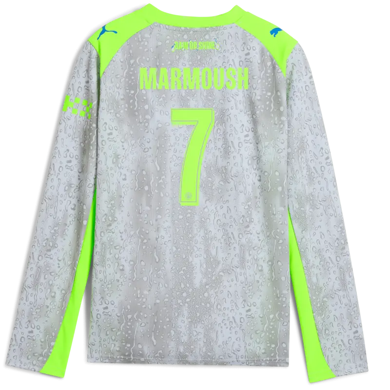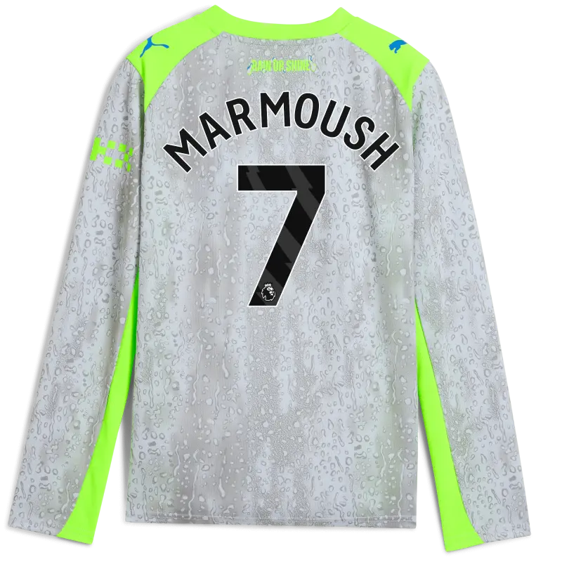 Kids’ Manchester City Third Jersey 2025/26 Long Sleeve With MARMOUSH 7 Printing