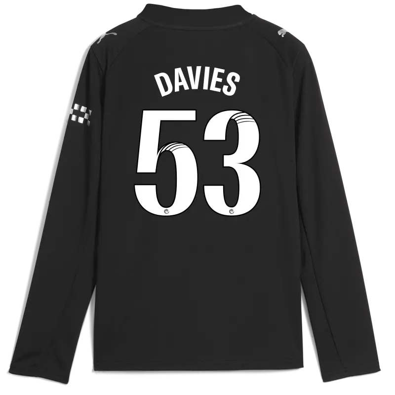 Kids’ Manchester City Away Jersey 2025/26 Long Sleeve With DAVIES 53 Printing