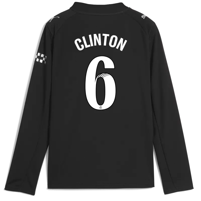 Kids’ Manchester City Away Jersey 2025/26 Long Sleeve With CLINTON 6 Printing