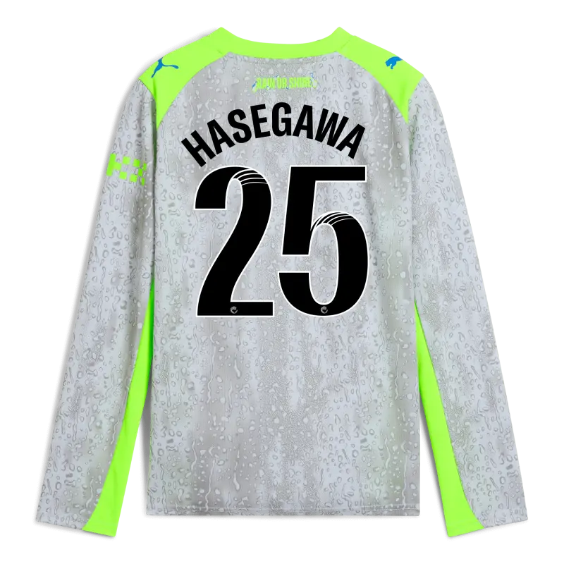 Kids’ Manchester City Third Jersey 2025/26 Long Sleeve With HASEGAWA 25 Printing