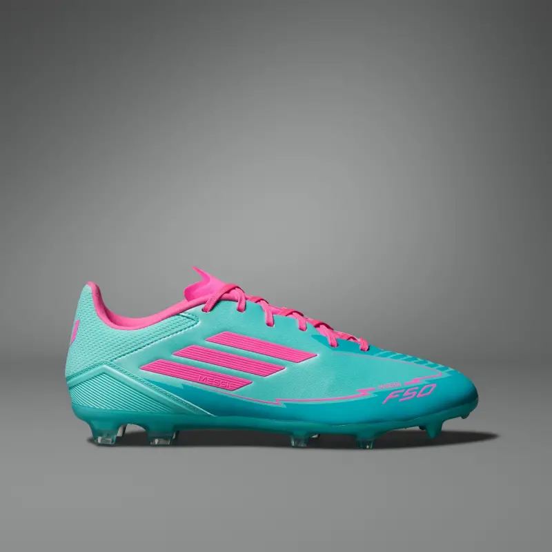 Legendary F50 pace. Mesmerizing Messi skills. Part of a range built to match the GOAT’s on-field preferences, these adidas League soccer cleats have a flexible HybridTouch upper with a comfortable synthetic tongue. The versatile outsole offers propulsion on firm ground and artificial grass.