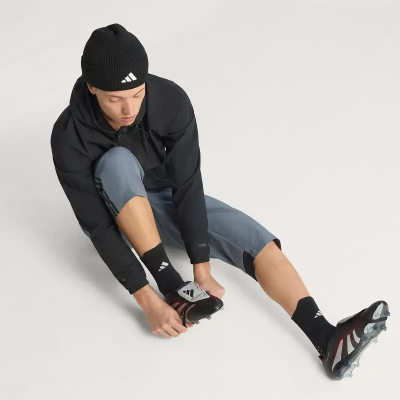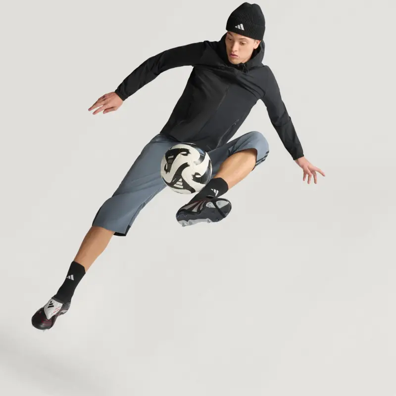 A twist on the iconic Predator color way, these limited-collection adidas League soccer cleats add a splash of silver for an opulent, sports car-inspired look. Their Hybridfeel upper incorporates an all-over 3D texture, a fold-over tongue and grippy Strikescale fins. A Controlplate outsole keeps you stable on firm ground and artificial grass.