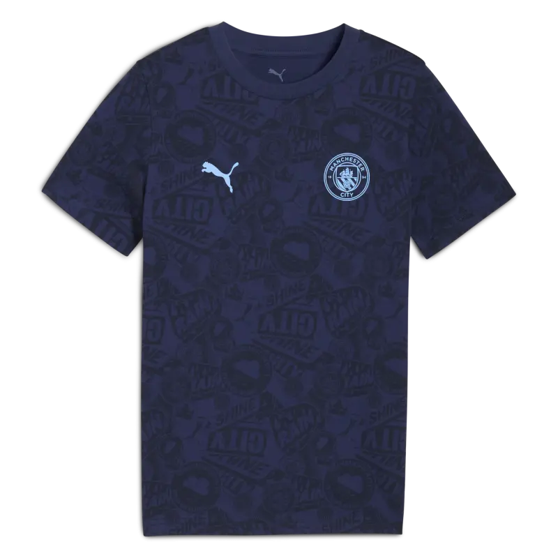 The Kids’ Manchester City Ftblculture Tee is perfect for young fans. Made from soft 100% cotton, this regular-fit tee features the iconic Manchester City crest and PUMA Cat logo in bold rubber print on the chest for a sporty, standout look.