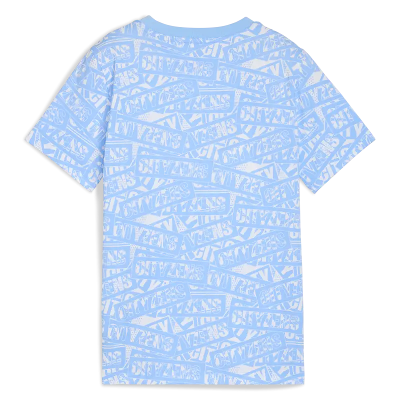 The Kids’ Manchester City Ftblculture Tee is perfect for young fans. Made from soft 100% cotton, this regular-fit tee features the iconic Manchester City crest and PUMA Cat logo in bold rubber print on the chest for a sporty, standout look.