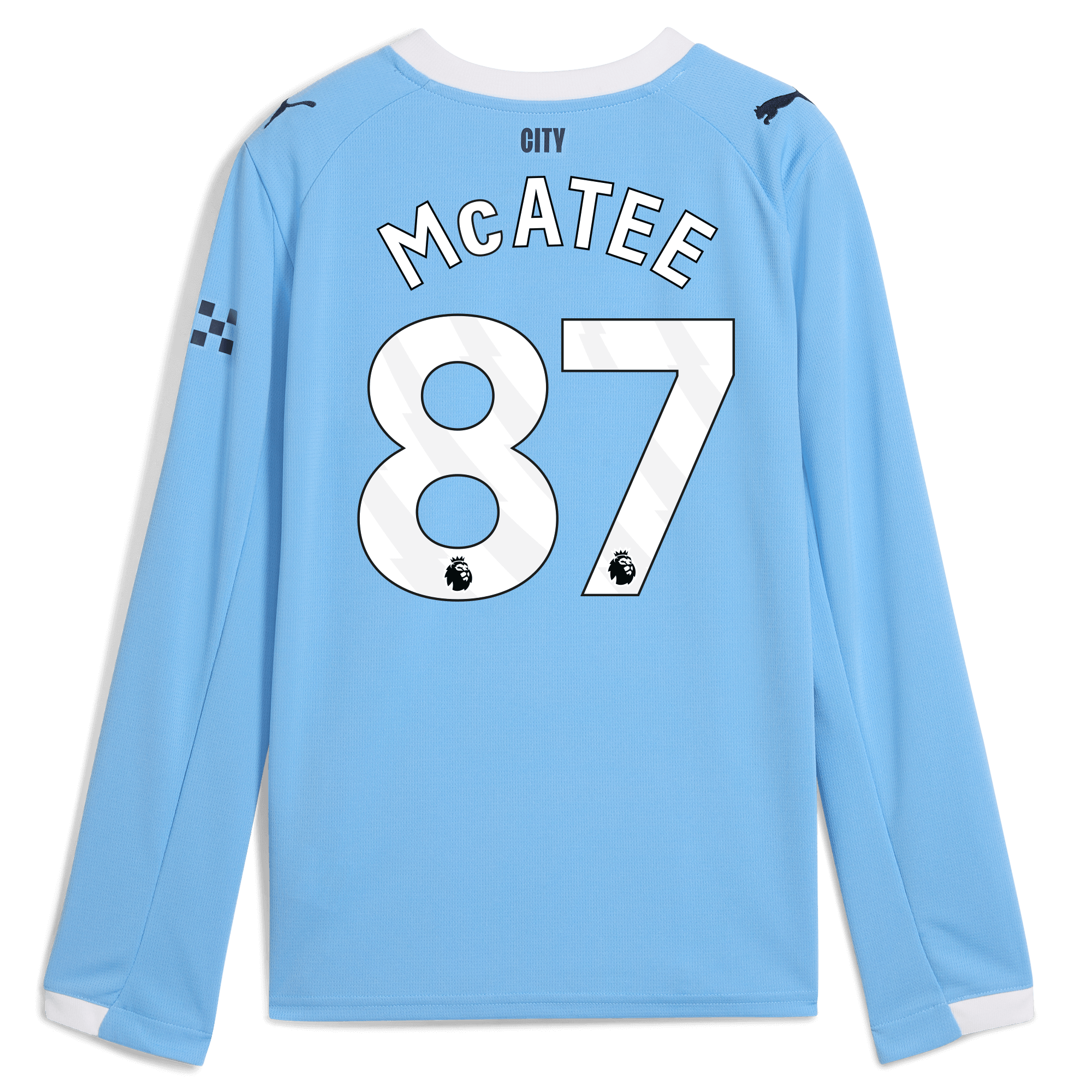Engineered for young Cityzens, the Kids’ Manchester City Home Long Sleeve Jersey 2025/26 is a perfect mix of club pride and everyday comfort. Built with PUMA’s dryCELL technology to keep them cool and dry during any activity. For the first time in club history, the home kit features the iconic sash, once reserved for away kits, now reimagined in classic Sky Blue. It’s a strong connection to our past and a bold statement for the future, representing the spirit of City: doing things our way, on and off the pitch. Other signature details include an embroidered Manchester City crest, PUMA Cat logo, and “CITY” printed on the back neck. Breathable mesh panels and curved side inserts ensure a flexible fit for matchdays, playground fun, or showing off their City spirit wherever they go.