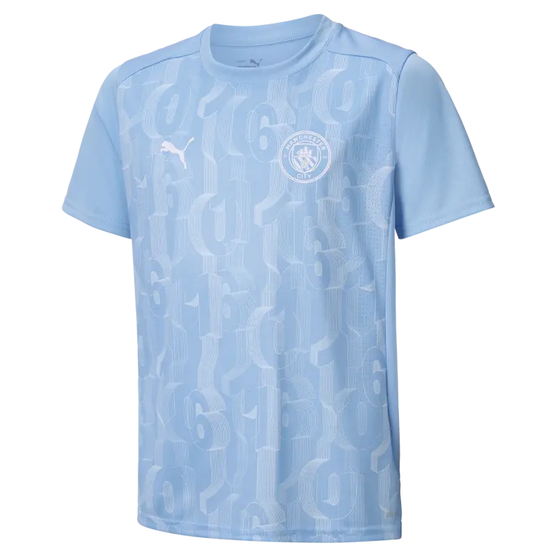 Inspired by our passionate Manchester City fans, this high-quality Pre-Match Jersey 2024/25 for kids features front and back panels with outstanding print and is crafted in a sophisticated slim fit using dryCELL moisture-controlling technology for your optimal sports perfromance. The printed PUMA Cat logo and Manchester City crest complete the design.