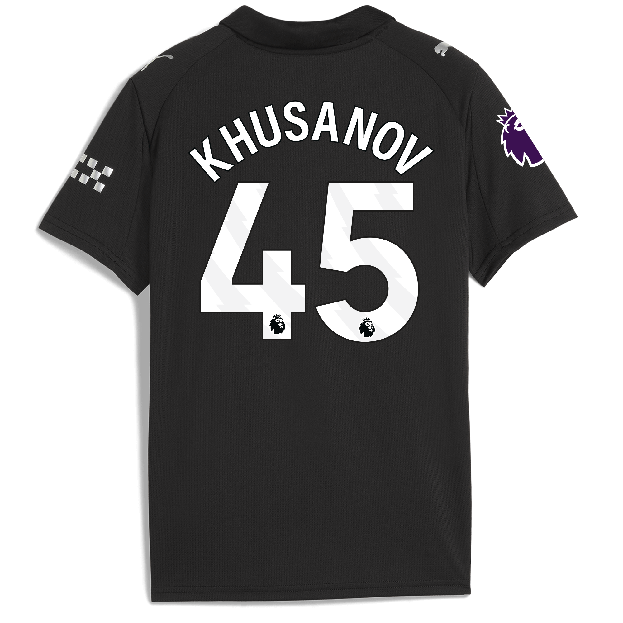 Kids’ Manchester City Premier League Away Jersey 2025/26 With KHUSANOV 45 Printing