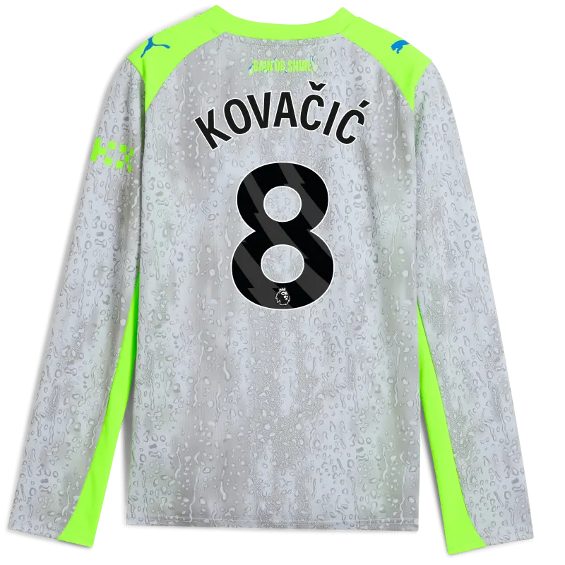 Kids’ Manchester City Third Jersey 2025/26 Long Sleeve With KOVACIC 8 Printing
