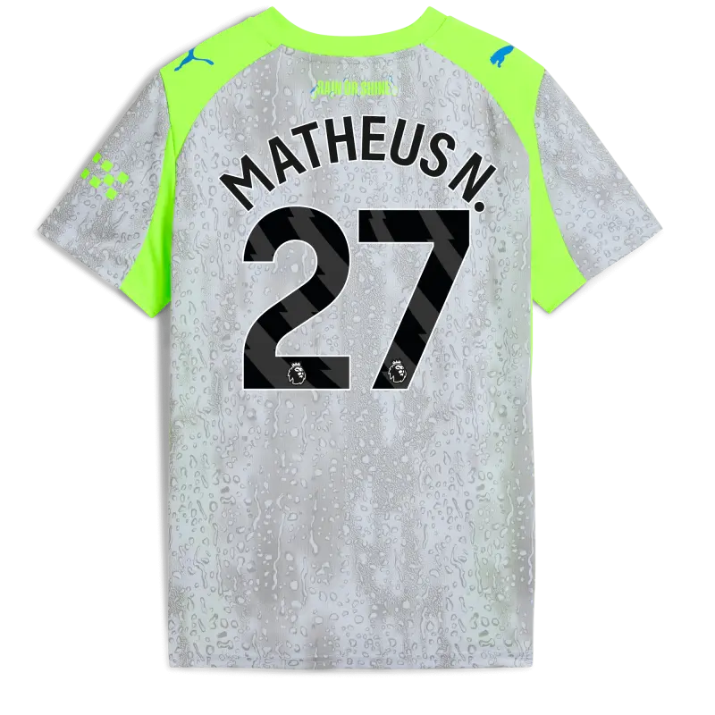 Kids’ Manchester City Third Jersey 2025/26 With MATHEUS N. 27 Printing