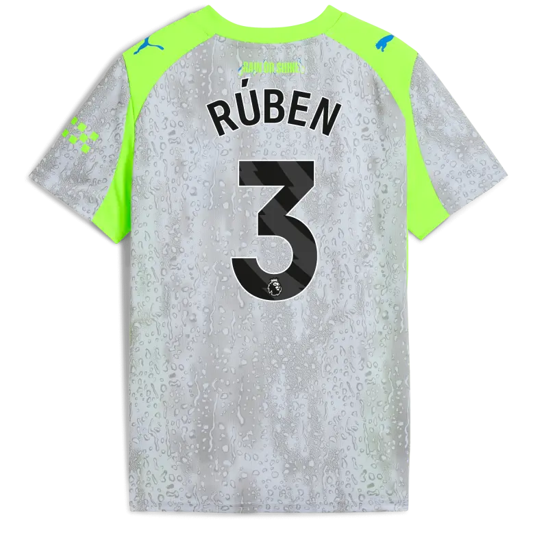 The Kids’ Manchester City Third Jersey 2025/26 shines through the storm. Designed for performance, this jersey features dryCELL technology to keep young City fans dry during every match or workout. The regular fit, short sleeves, and breathable mesh panels at the shoulders, sides, and underarms ensure optimal airflow and comfort. Finished with the Manchester City crest and PUMA Cat logos on the front and sleeves, it proudly represents the club’s fearless spirit. Made to stand out with a unique rain design and a “Rain or Shine” print on the back. Man City are a symbol of the people, the culture, and the humour of Manchester. That’s why the 25/26 Third Kit is a tribute to Mancunian weather, designed for those who carry City in their hearts, rain or shine (Though, let’s be honest, mostly rain).
