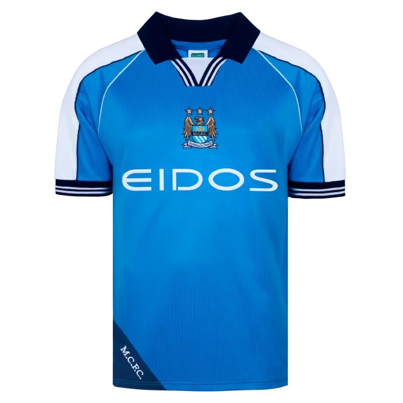 Celebrate years of victory with this retro shirt worn by the Manchester City players in 2000. Details include the Manchester City badge and EIDOS sponsor on the front. An essential item for any true Cityzen.