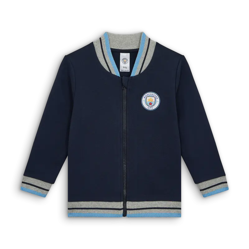 Keep your little one cozy in style with the Manchester City Collegiate Baby Fleece, featuring the iconic club crest, soft cotton-blend fabric, and ribbed collar, cuffs, and hem for comfort.