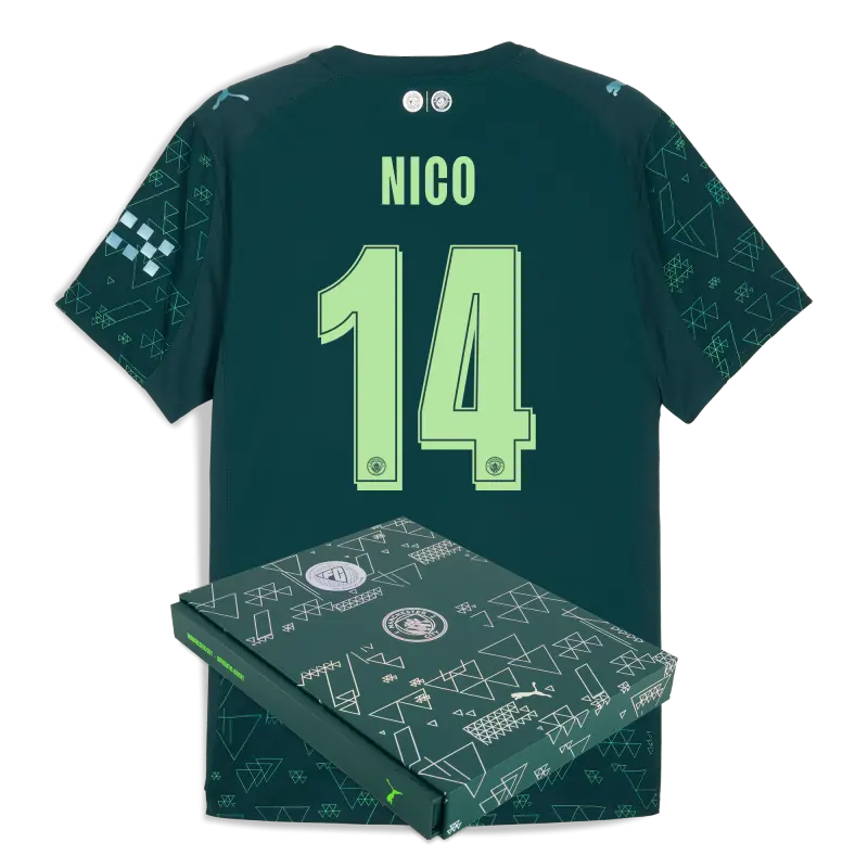 Manchester City EA SPORTS FC Authentic Jersey 2025/26 With NICO 14 Printing in Gift Box