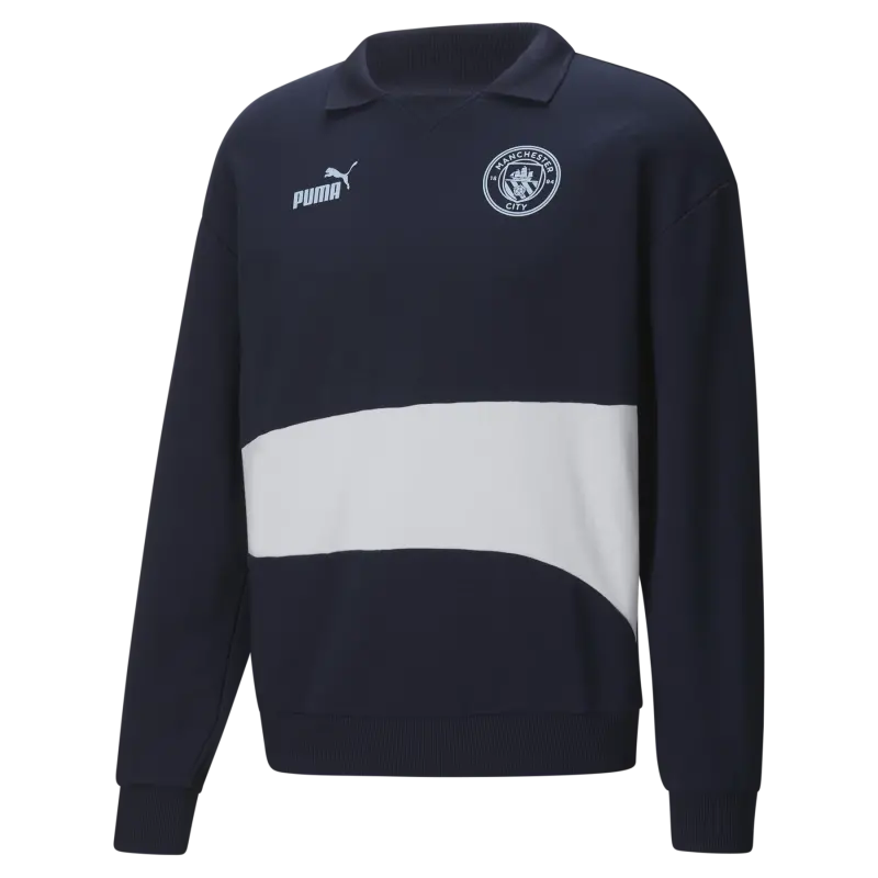 Sophistication, unique style and the spirit of Manchester City are woven into every fiber of this drill top. Executed in a relaxed fit silhouette with elastic waistband and cuffs for optimal comfort this piece stands out with its Manchester City-inspired contrasting panels. The iconic Manchester City crest and the PUMA No1 logo detail complete the design.