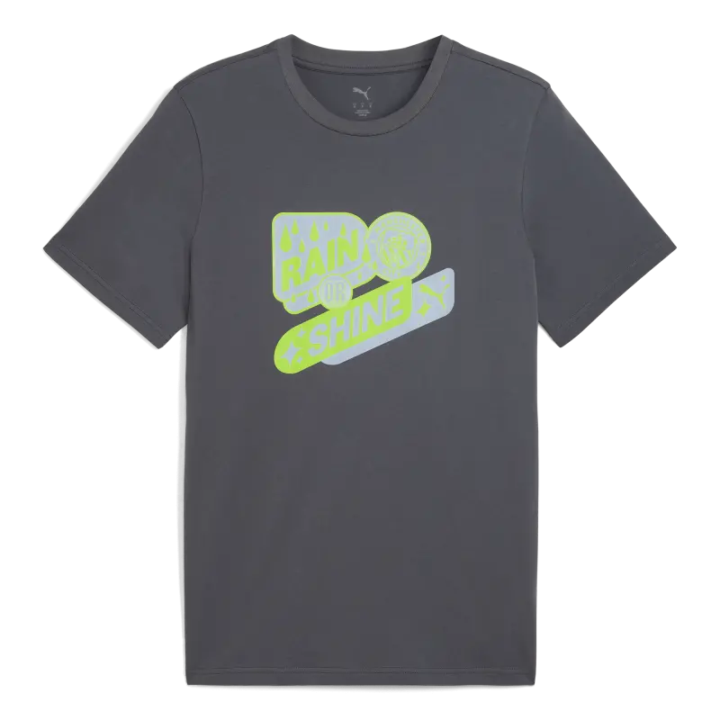 The Manchester City Ftblculture Tee combines comfort and style. Made from 100% cotton, it offers a regular fit and features the Manchester City crest and PUMA Cat logo in a bold rubber print on the chest. With short sleeves and a timeless design, this tee is a must-have for any City fan.