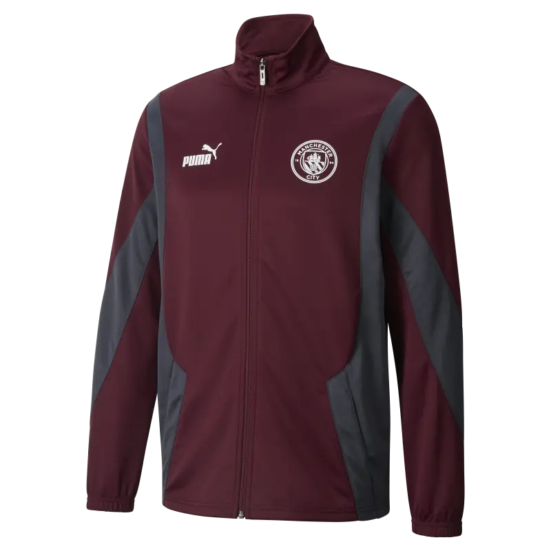 We present the Manchester City FtblNrgy+ Jacket. The perfect fusion of comfort and team pride. Designed with a relaxed fit, elasticated waistband and cuffs, and flatlock stitching to prevent bulk and friction. It makes a statement with bold contrasting panels, proudly showcasing the iconic Manchester City club crest and the PUMA No.1 logo.