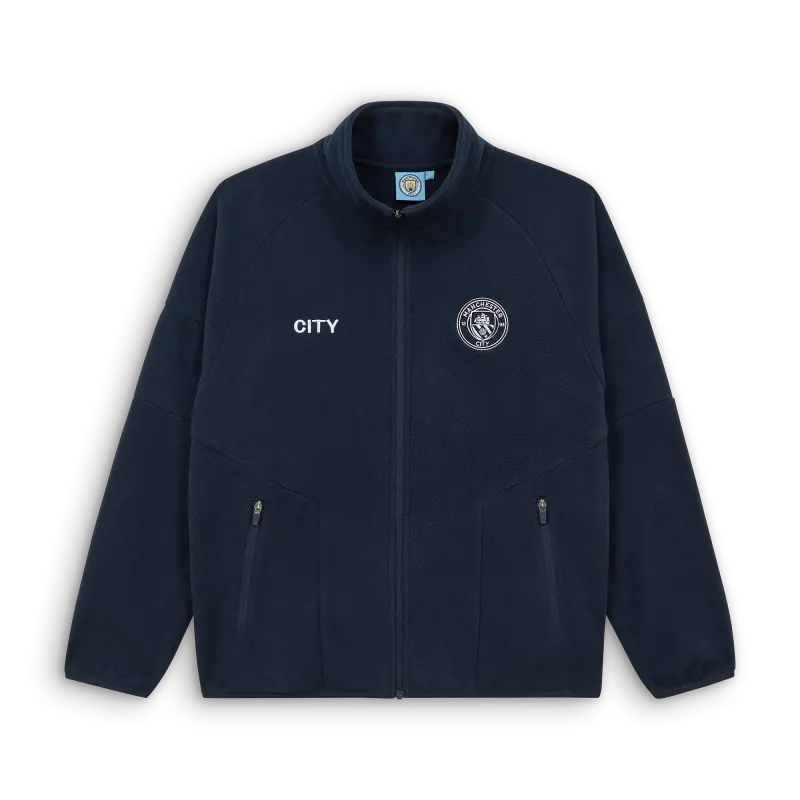 The Manchester City Full Zip Fleece delivers cosy warmth with soft 300gsm polyester microfleece, featuring an embroidered crest, full-zip closure, and elastic bindings—perfect for layering in comfort and style.