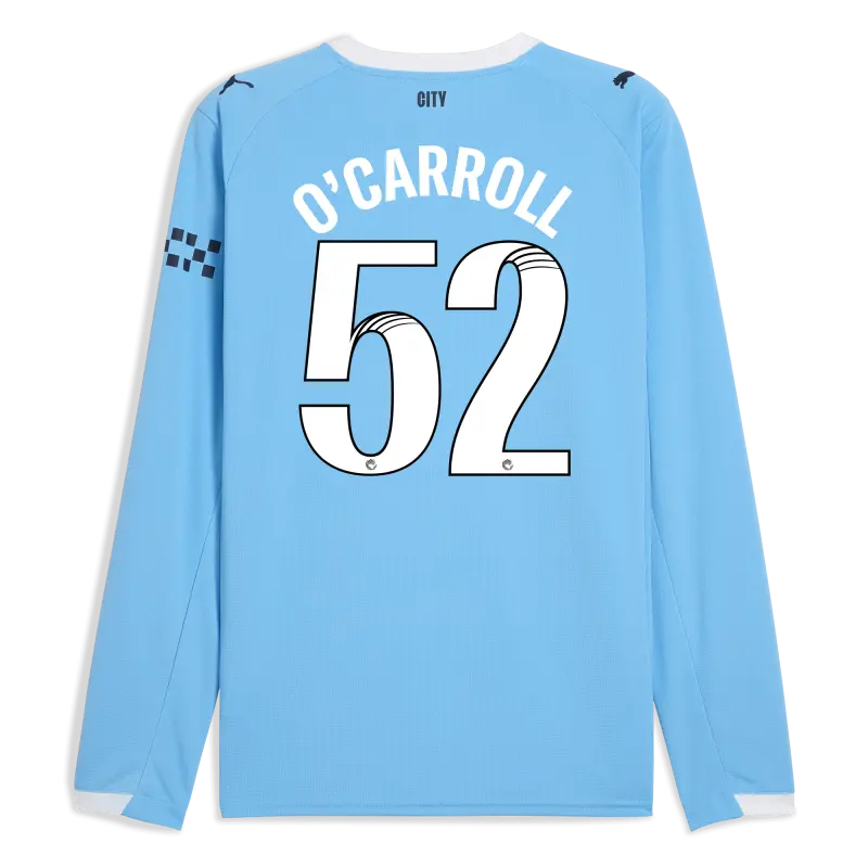 Manchester City Home Jersey 2025/26 Long Sleeve With O’CARROLL 52 Printing