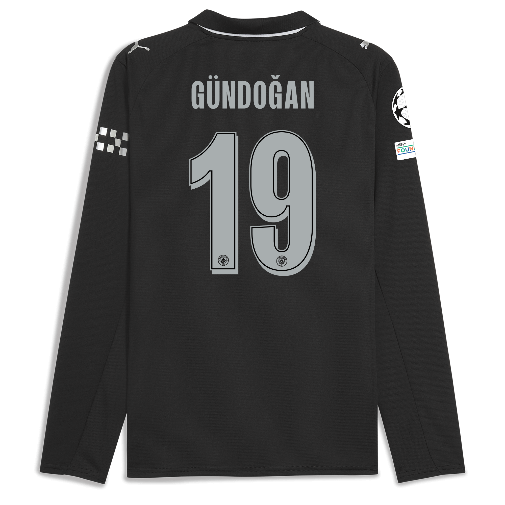 Manchester City Man City Champions League Away Jersey 2025/26 Long Sleeve With GÜNDOĞAN 19 Printing