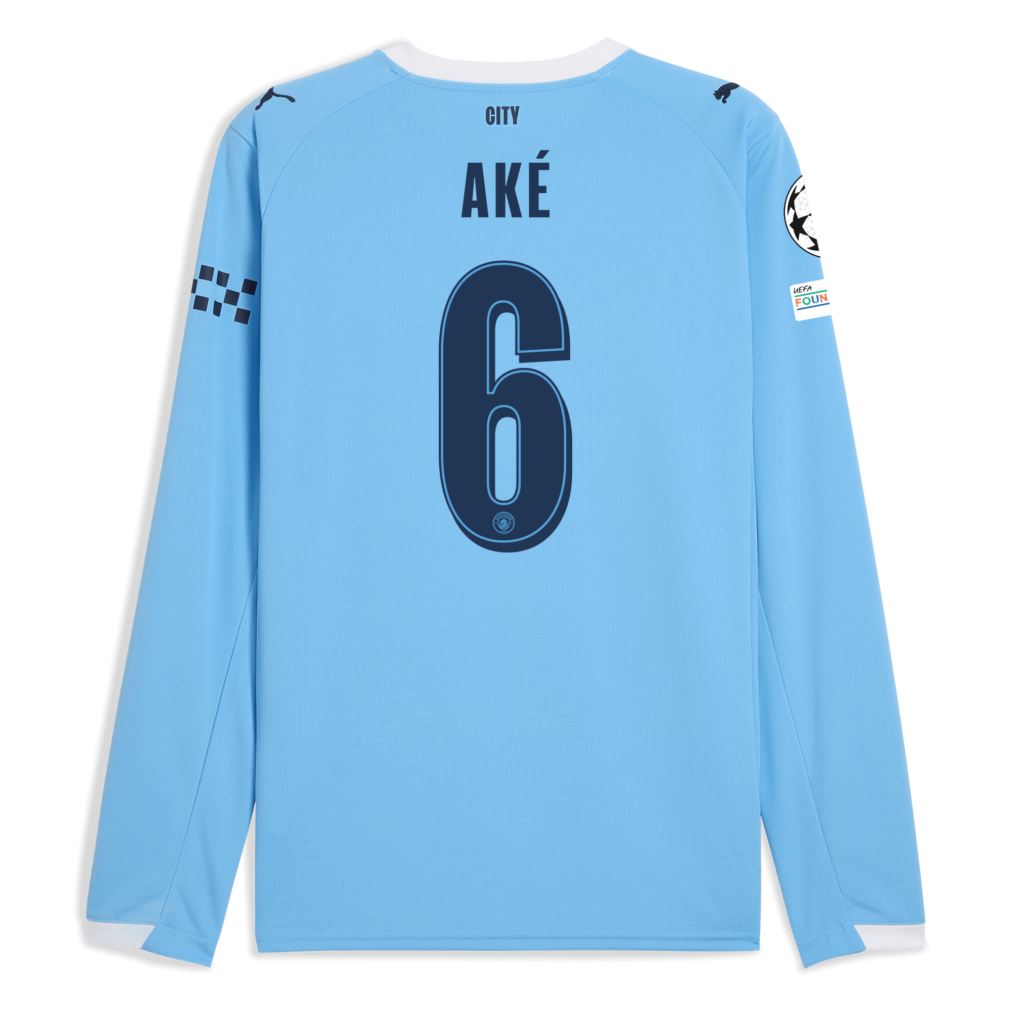 Manchester City Man City Champions League Home Jersey 2025/26 Long Sleeve With AKÉ 6 Printing