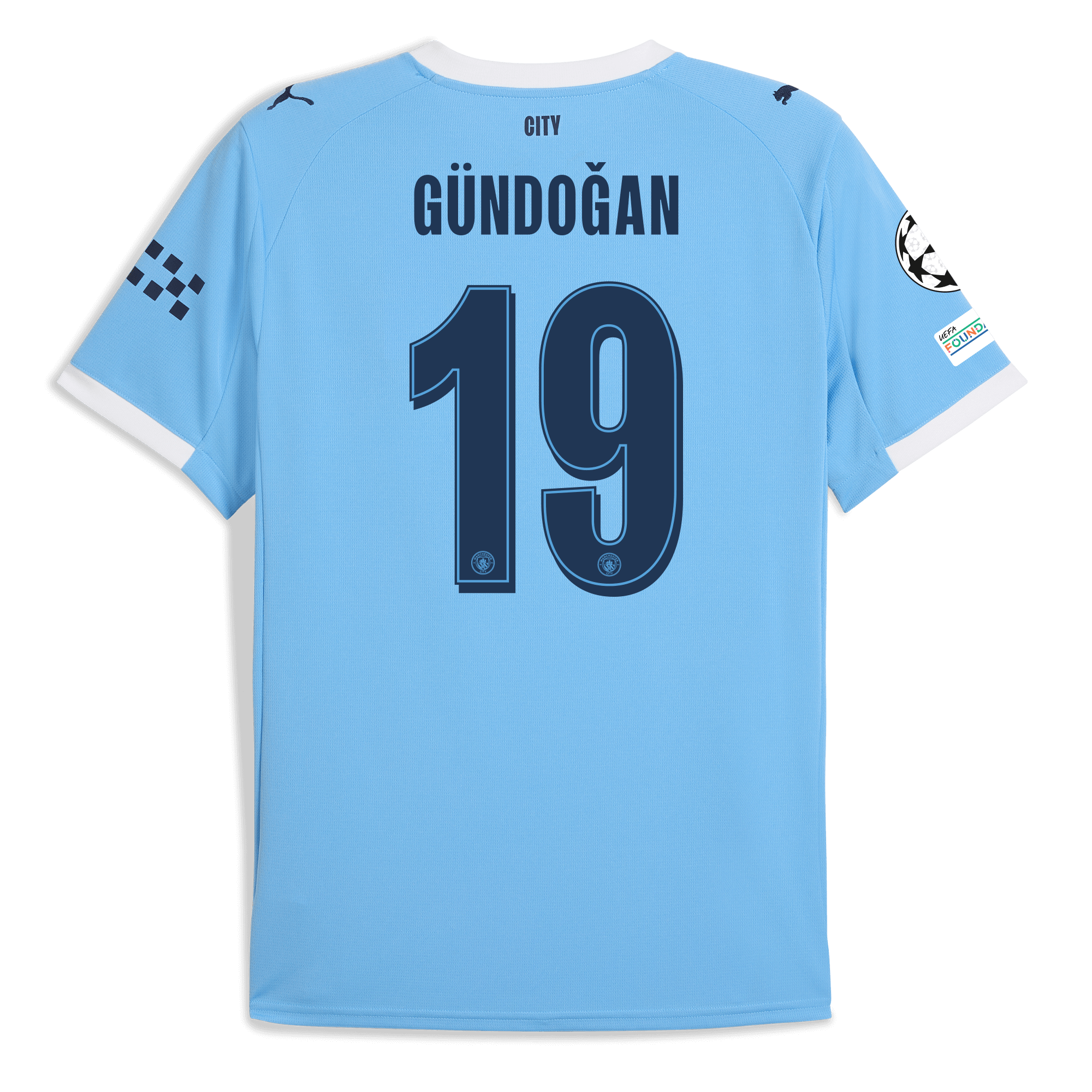 Manchester City Man City Champions League Home Jersey 2025/26 With GÜNDOĞAN 19 Printing