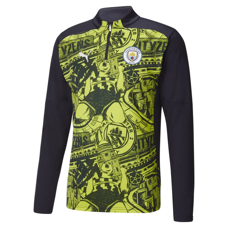 This high-quality Pre-Match 1/4 Zip Top is expertly crafted with long-sleeves, functional quarter zip and slim fit for a more sophisticated touch. Featuring front and back panels with outstanding print and printed PUMA Cat logo and Manchester City crest that complete the look. Sustainably produced using dryCELL moisture-controlling technology for your optimal sports perfromance.