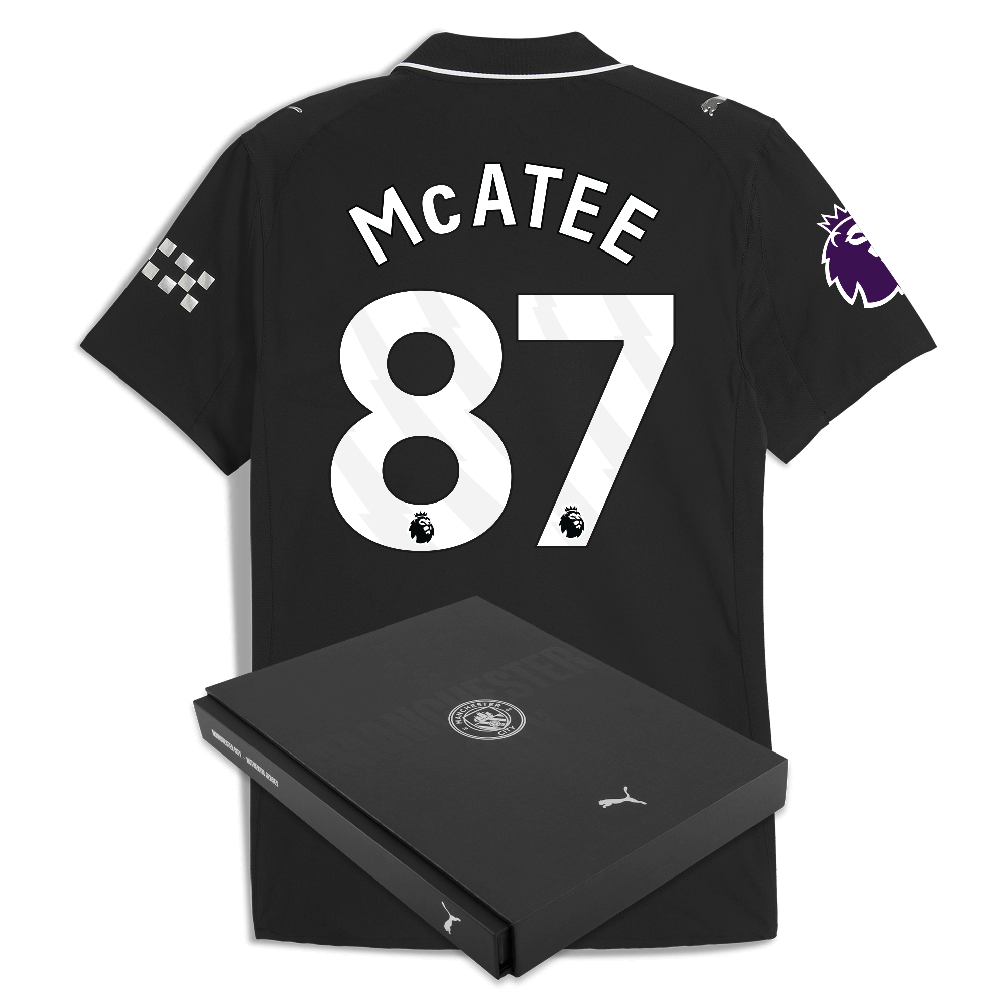 Manchester City Premier League Away Authentic Jersey 2025/26 With McATEE 87 Printing in Gift Box