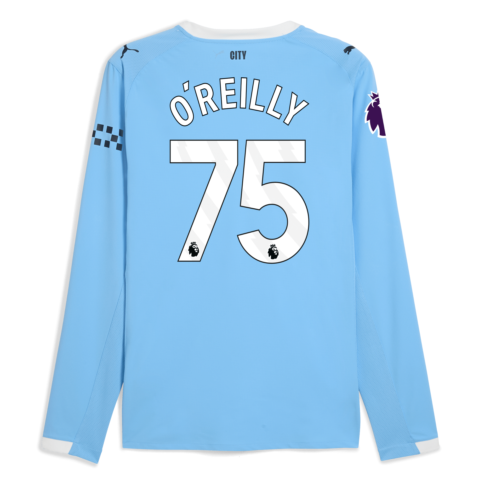 Manchester City Premier League Home Authentic Jersey 2025/26 Long Sleeve With O’REILLY 75 Printing
