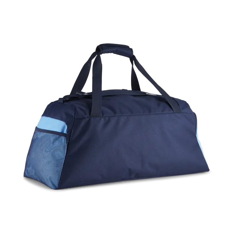 Pack like a champion with the Manchester City Teambag. Designed for convenience and style, it features the iconic club crest and PUMA Cat logo on the front. The spacious main compartment has a U-shaped zip opening, while the side zip compartment includes a dedicated shoe tunnel. A front pocket for valuables and side mesh bottle holder complete this versatile bag.