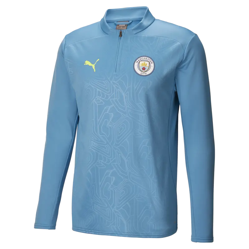 Add this Manchester City 1/4 Zip Training Hybrid Top to your sports essentials. This top with long sleeves is executed in sophisticated slim fit with stylish and comfortable 1/4 zip. The accentuating prints of the PUMA Cat logo and the signature Manchester City crest on the chest bring the team spirit. For a more unique look, this piece stands out with a patterned front panel. Advanced through warmCELL technology to keep you warm while providing optimal breathability.